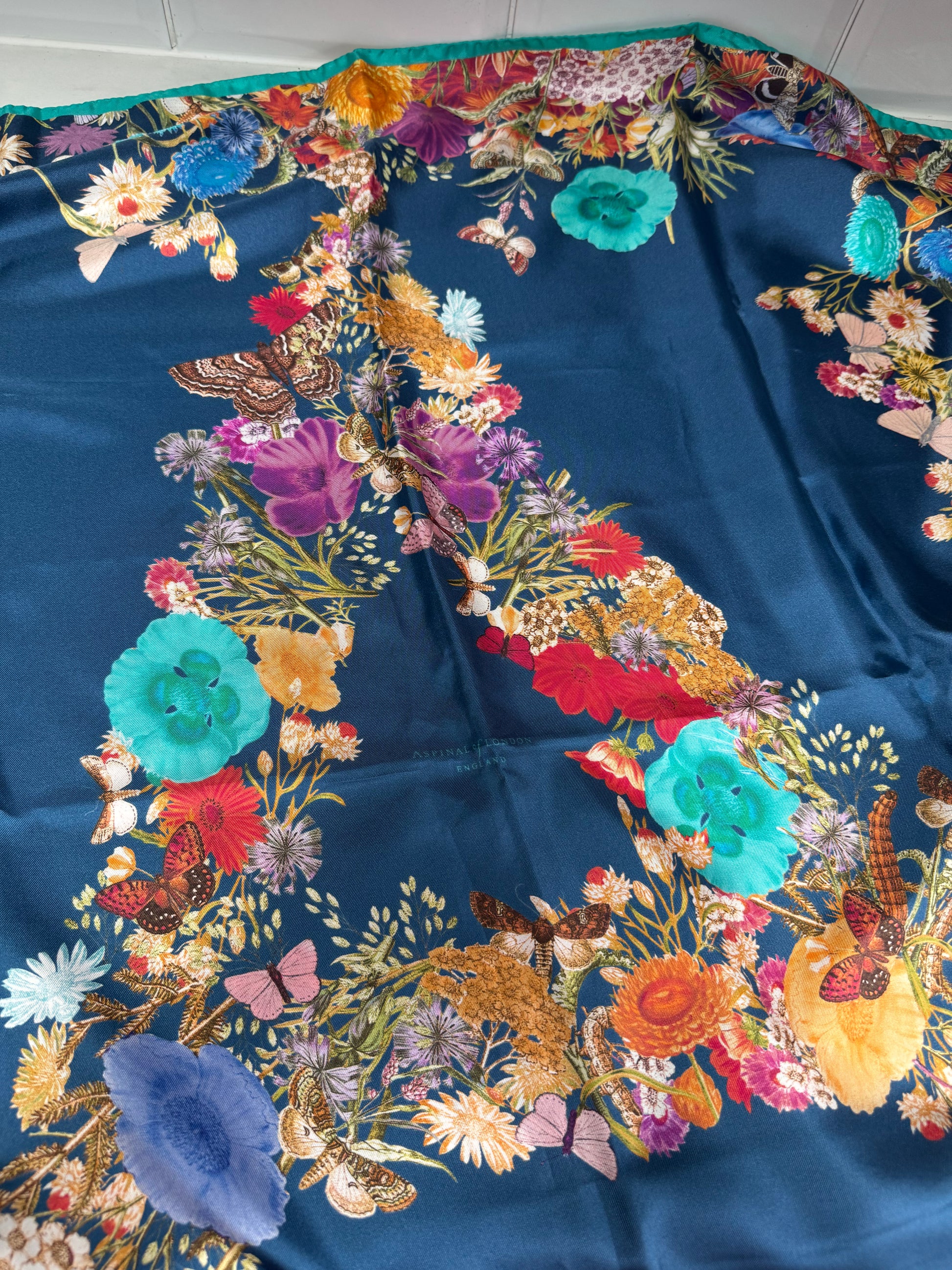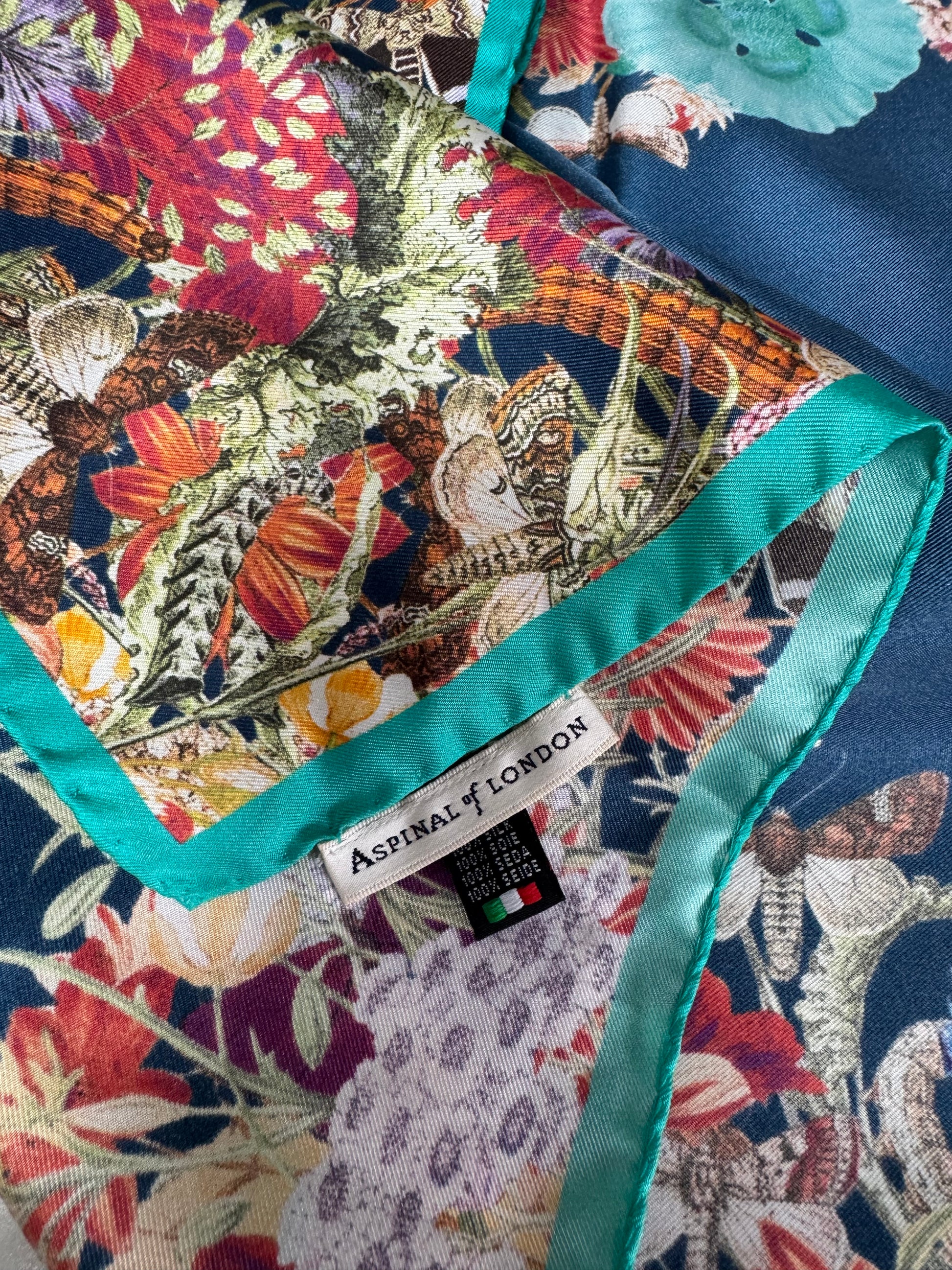 This is a lovely Aspinal of London Floral Printed Large Square Scarf in 100% Silk.