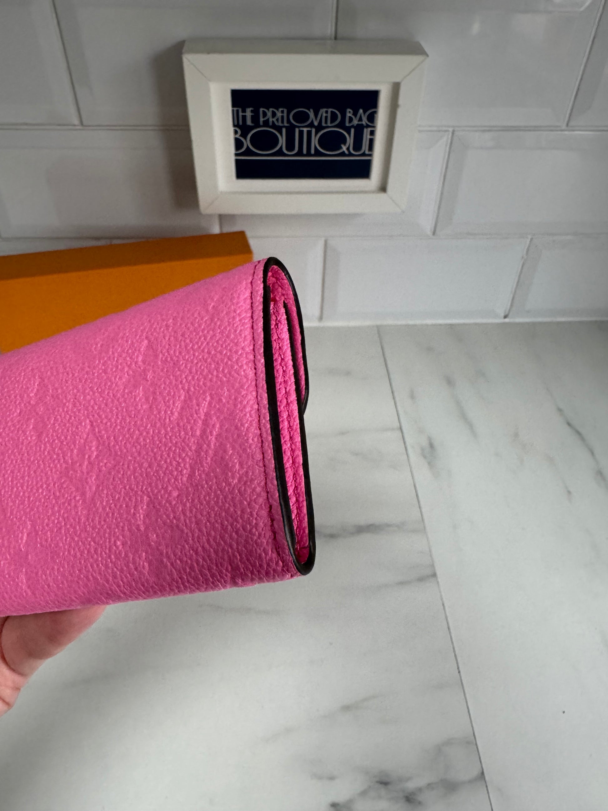 This item is Preloved but is in AS NEW condition. It had never been used!! It is crafted in a fabulous pocket-size with a curved front flap with popper closure.The interior is lined in smooth pink leather with a zipped coin section and a credit card slip.It is such a vibrant colour and just super handy for your items, especially if you’re carrying a smaller sized bag.