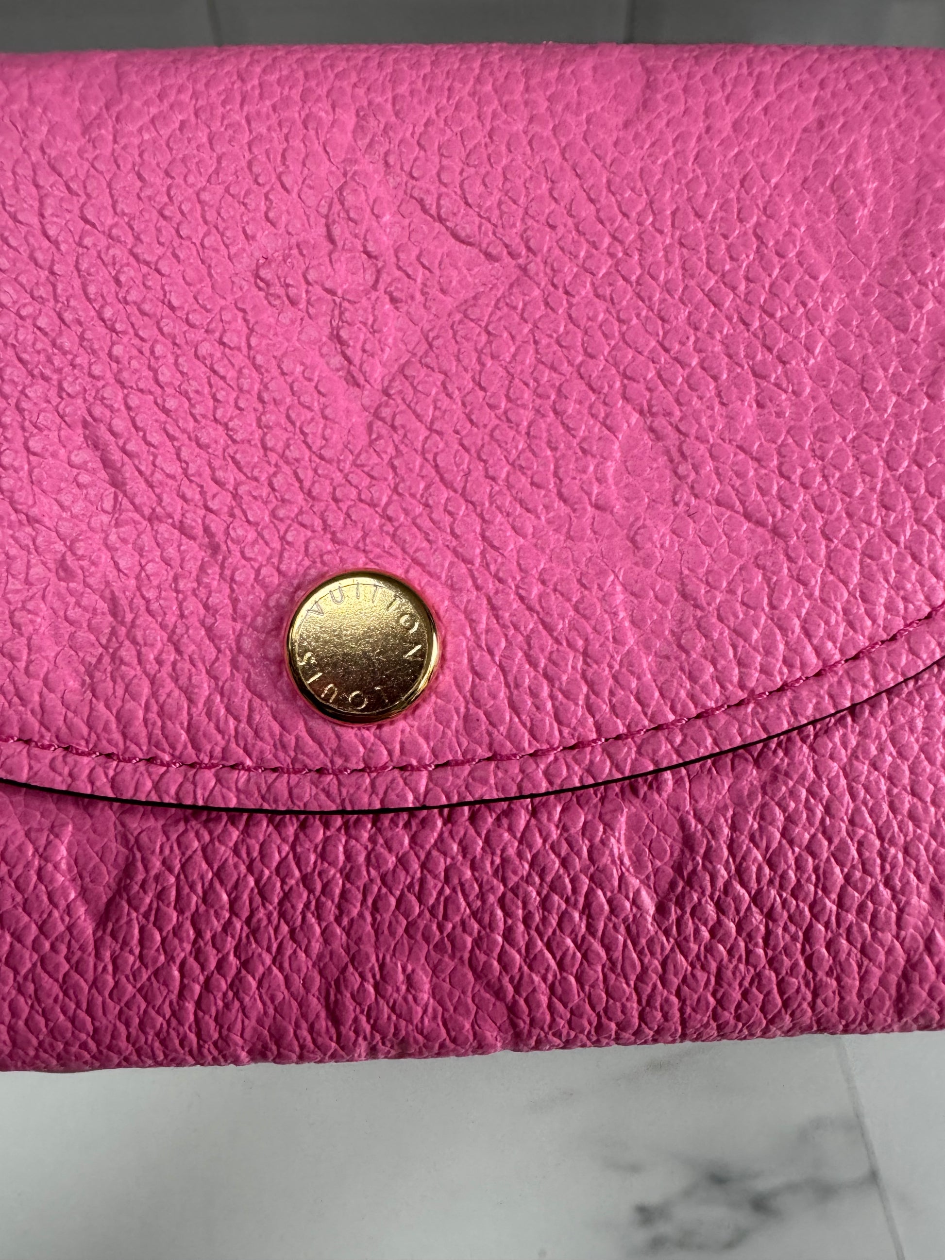 This a fabulous Louis Vuitton Rosalie coin purse in signature Monogram Empreinte leather in Kawaii pink!