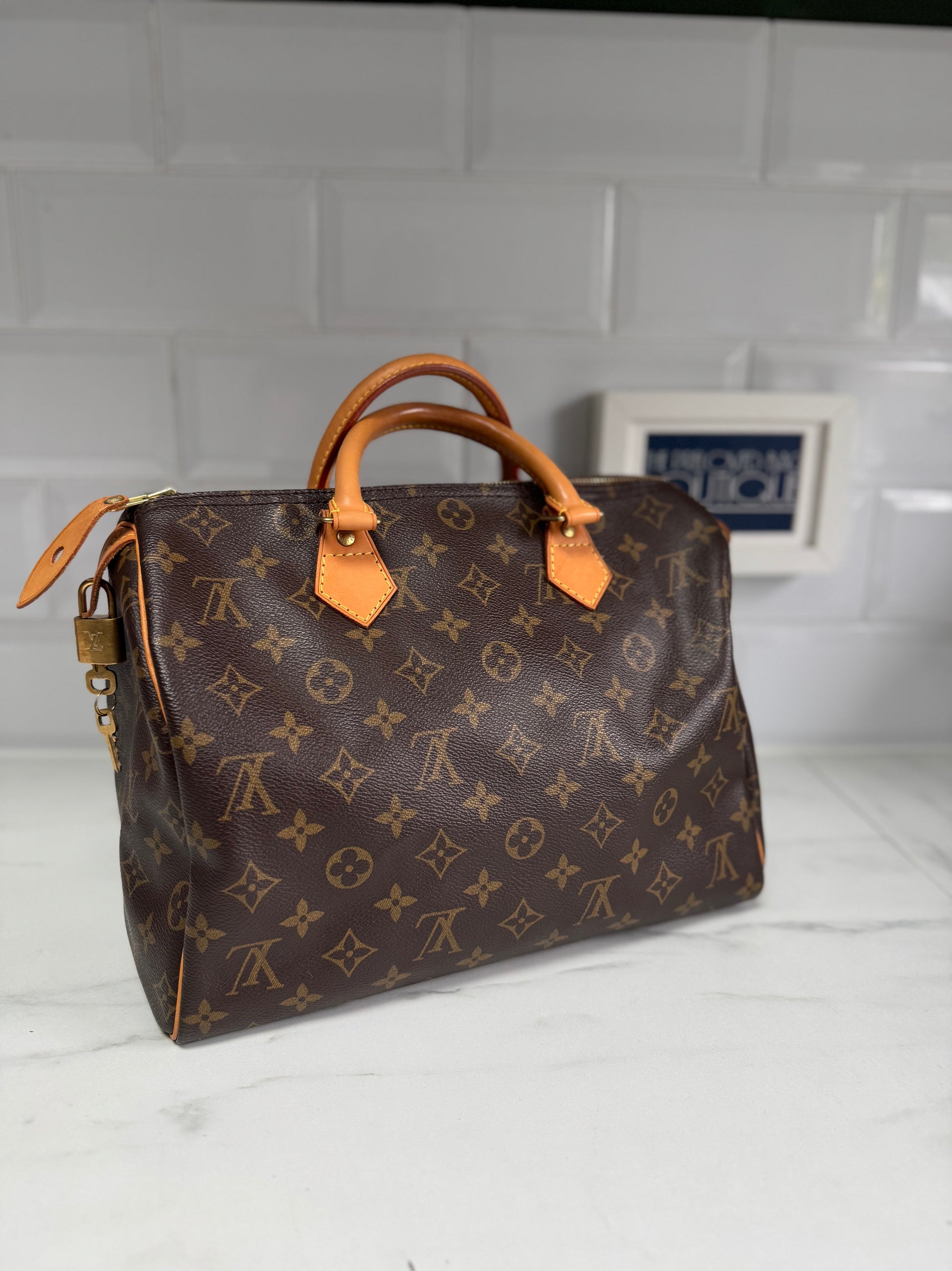 Another absolute beauty from LV. A Speedy 30, in the very iconic and instantly identifiable brown monogram printed canvas.Beautiful light caramel brown handles and accents with golden brass hardware and a brown neutral lining.