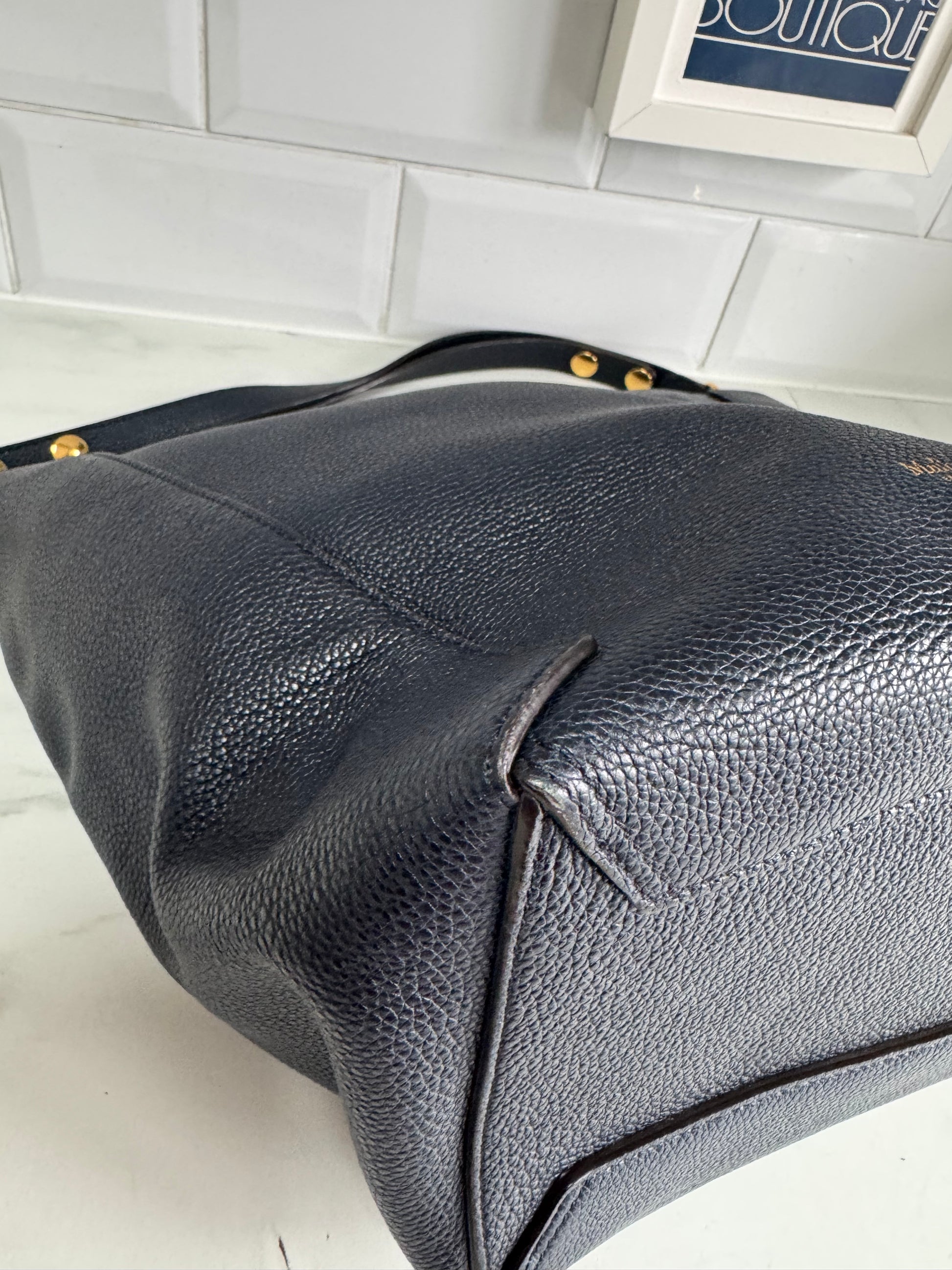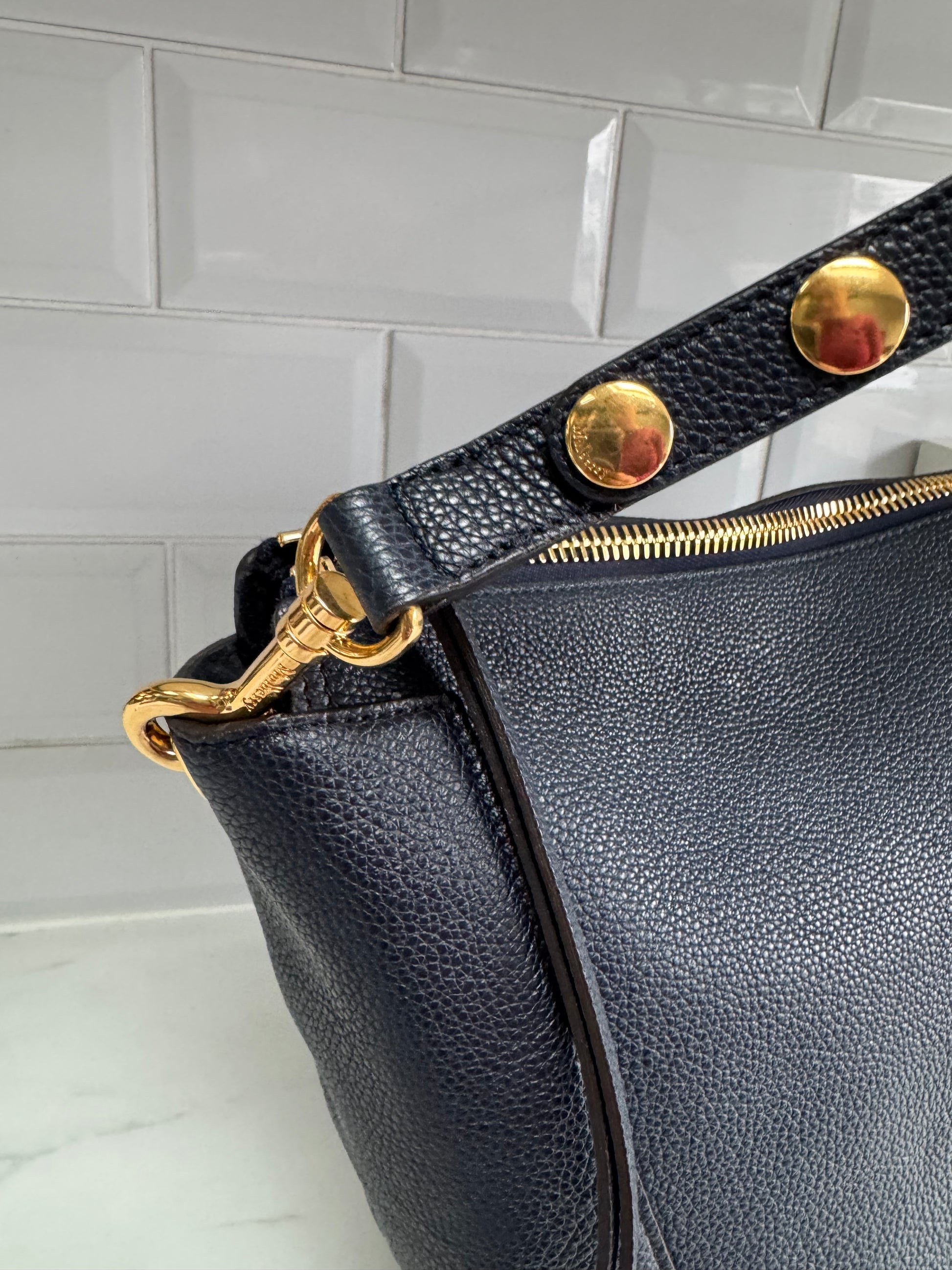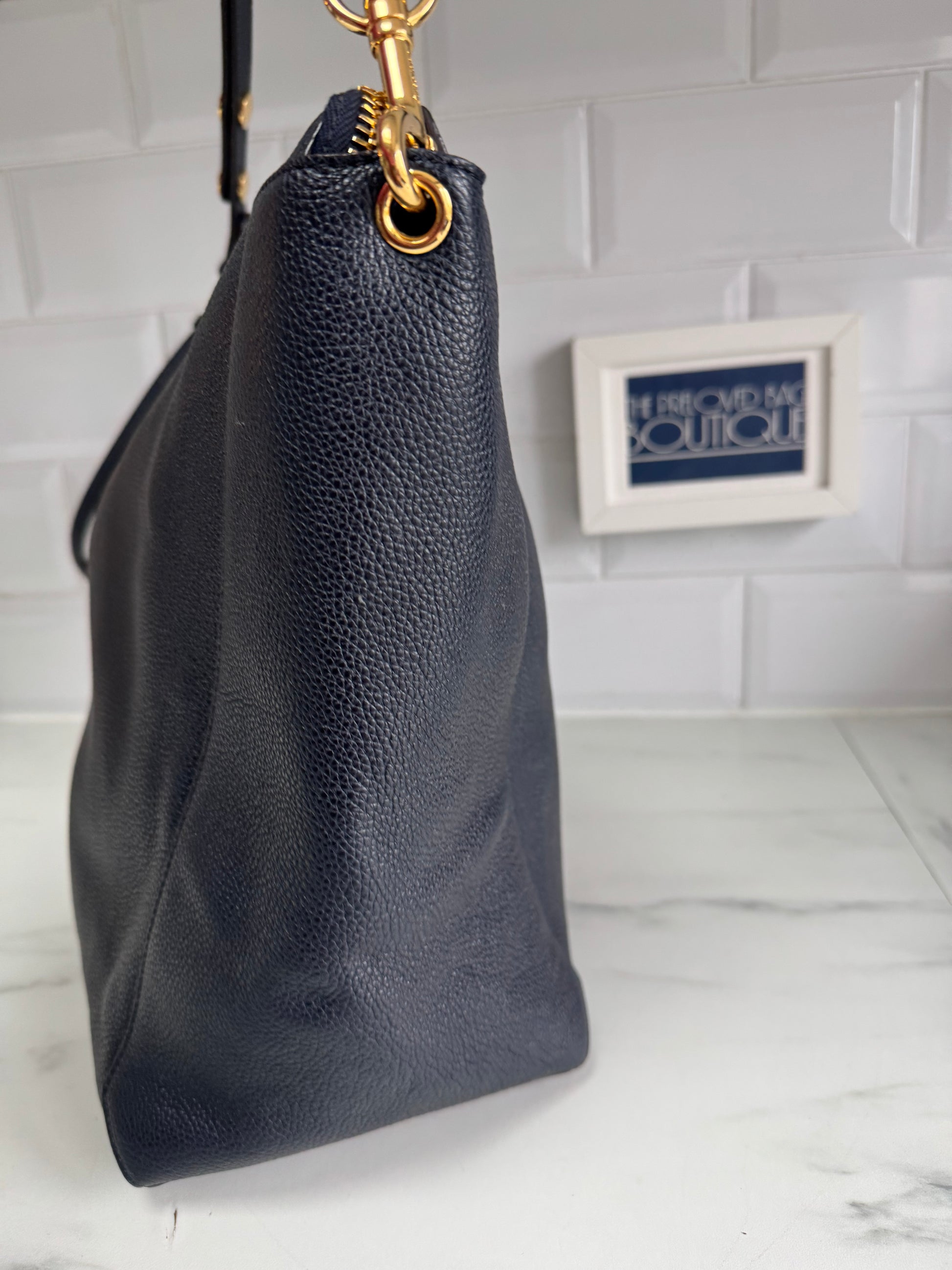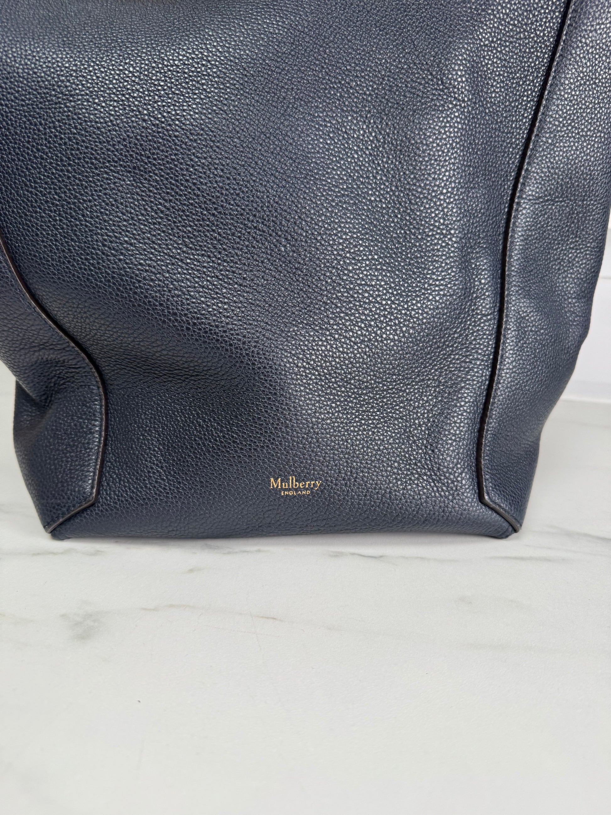 This is a fabulous large Mulberry Camden shopper in a beautiful Navy Small Classic Grain leather with golden brass tone hardware.