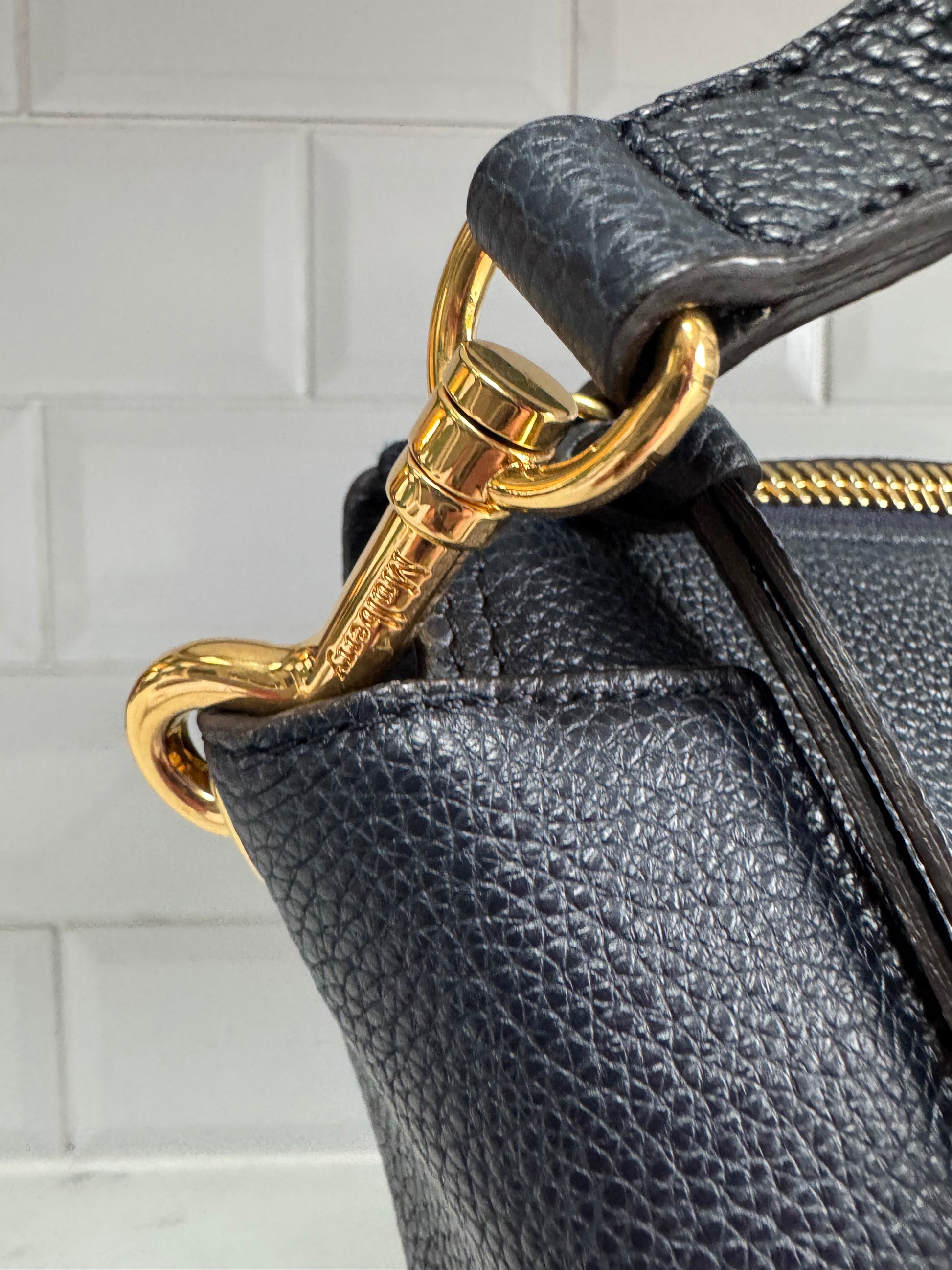 This bag is Preloved but in excellent condition inside and out. The Camden shopper is a style with a spacious interior. Its smooth leather body is toughened up with chunky zip detailing and round metal studs engraved with the iconic tree logos. The top of the bag has a zip top closure and it is lined in navy microfibre and there are 2 slip pockets inside.The shoulder strap is very comfortable and fits snugly against the body whilst holding all you need and more.It would make a great holiday/travel bag.It’s just fabulous.