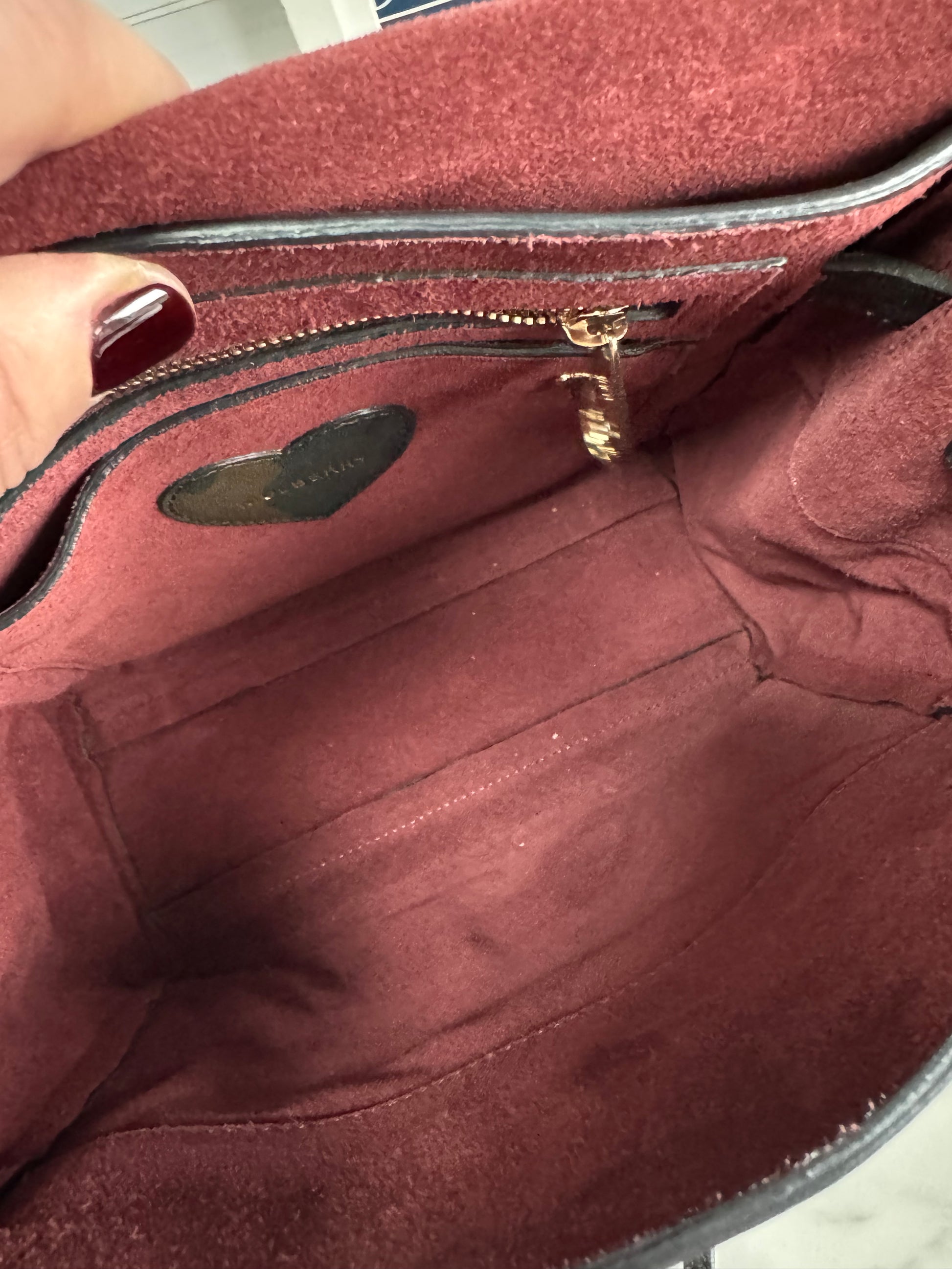 You can actually wear this bag as a crossbody body if you wish by combining both long straps together.Or use it as its intended purpose as a backpack and also as a grab bag via the top handles. It is stamped with Made in England on the base, it’s such an amazing bag.