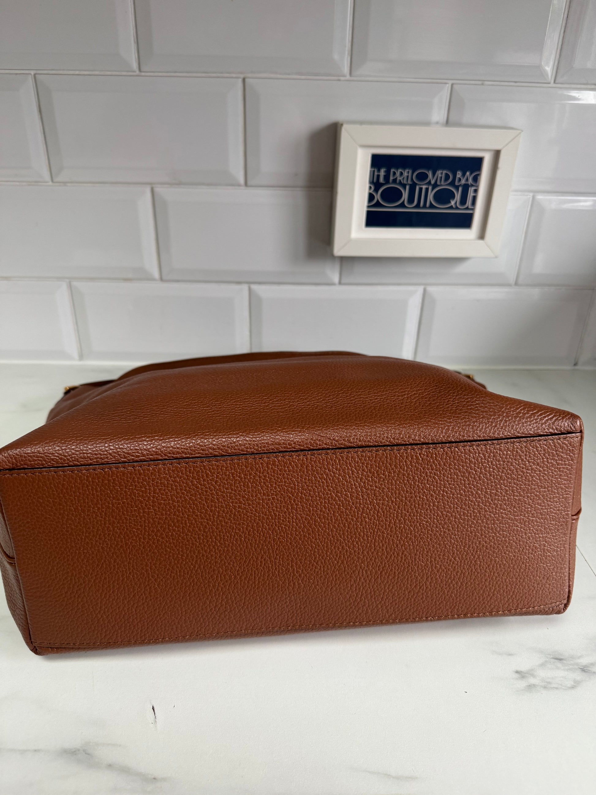 This bag is perfect for day to day or for work.So versatile and easy to carry.It can either be carried in the crook of the arm or on shoulder. The condition of this bag is ***AS NEW***.Excellent inside and out! It is lined in cream cotton and has a leather edged slip pocket and a zipped pocket inside.