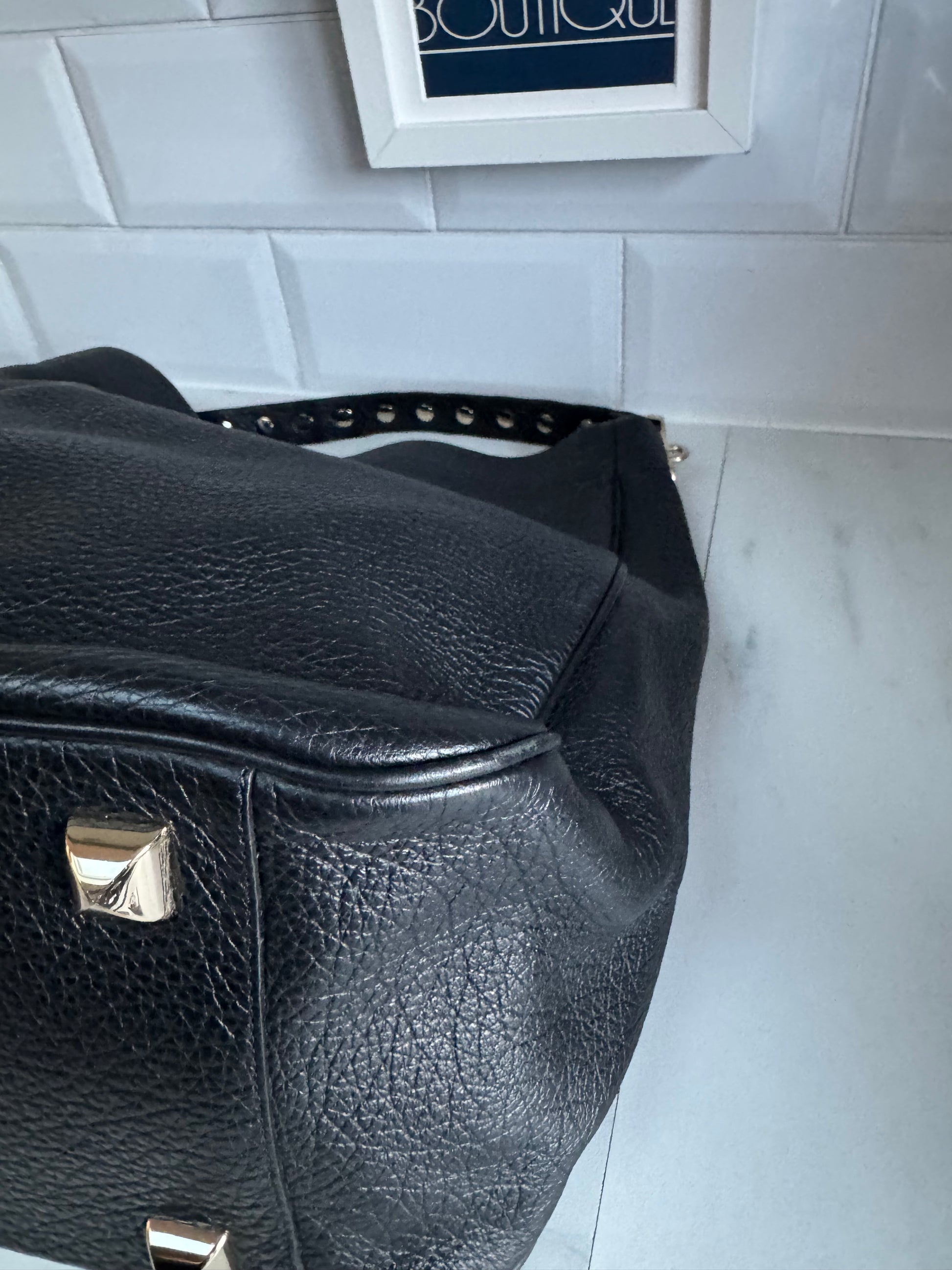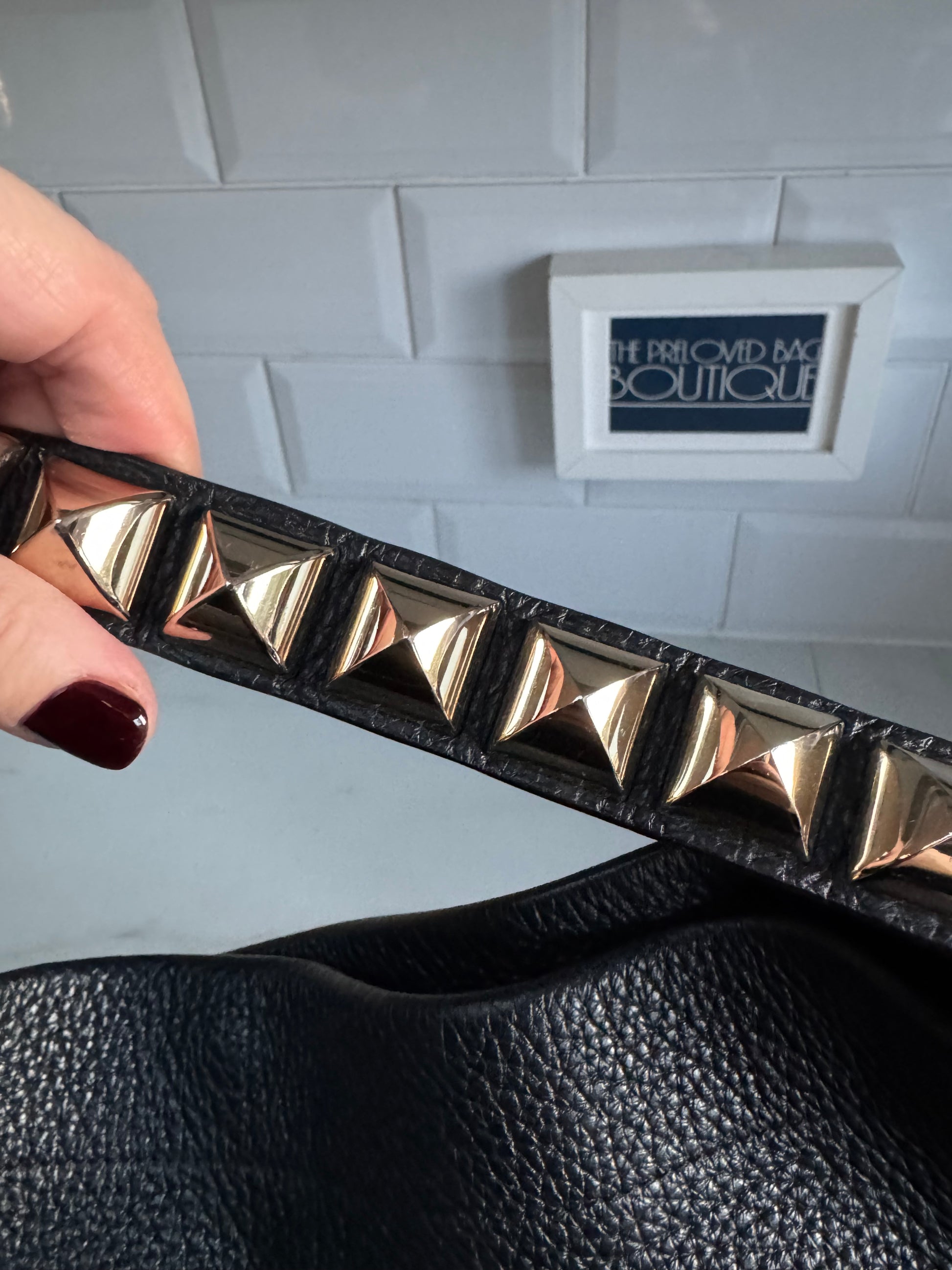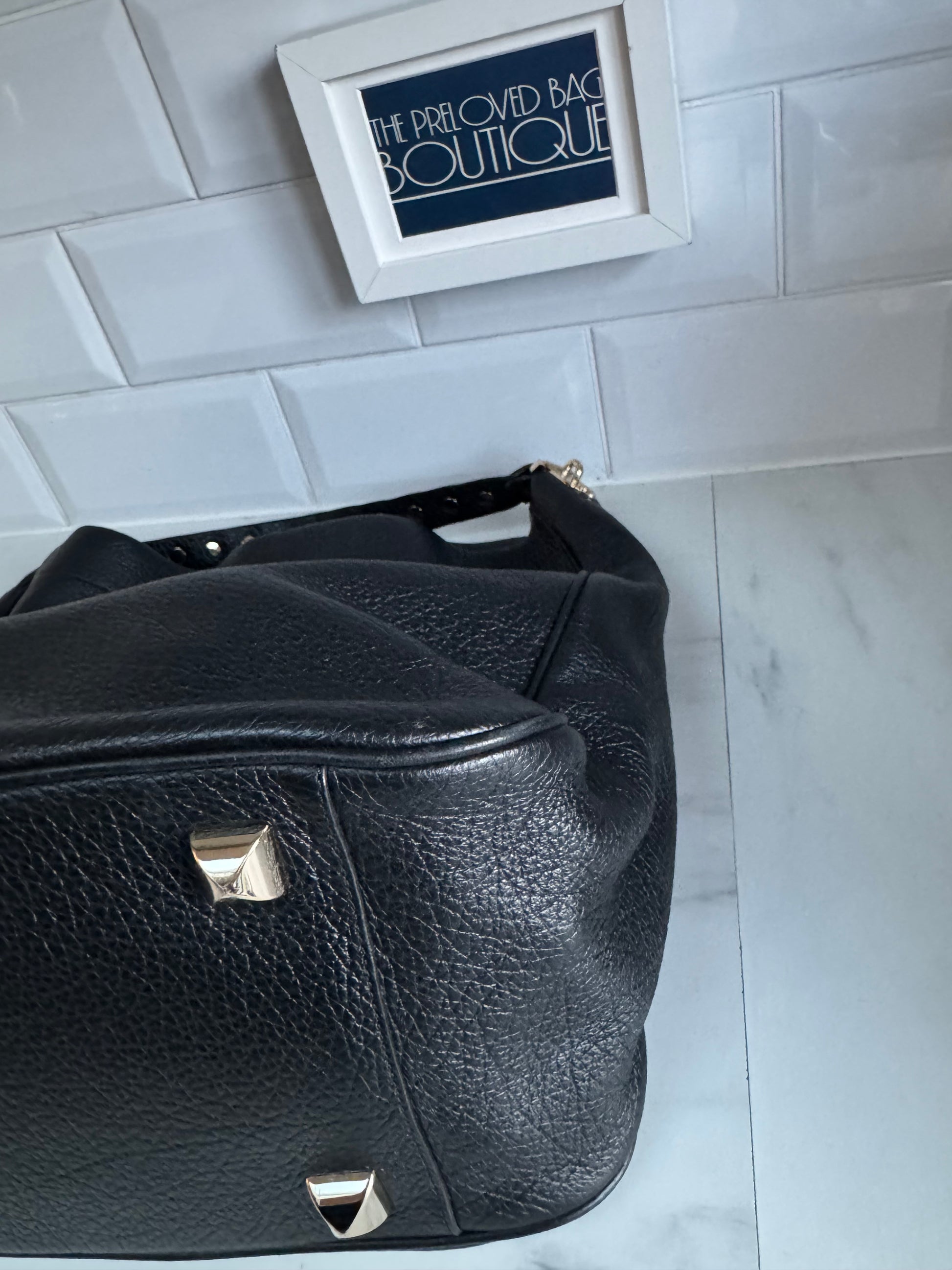 This bag is Preloved but in excellent condition. This bag is a simple hobo with lots of attractive detailing, like the pyramid studs on the shoulder strap. The Evelina hobo is extremely functional and very easy to carry and effortlessly stylish.