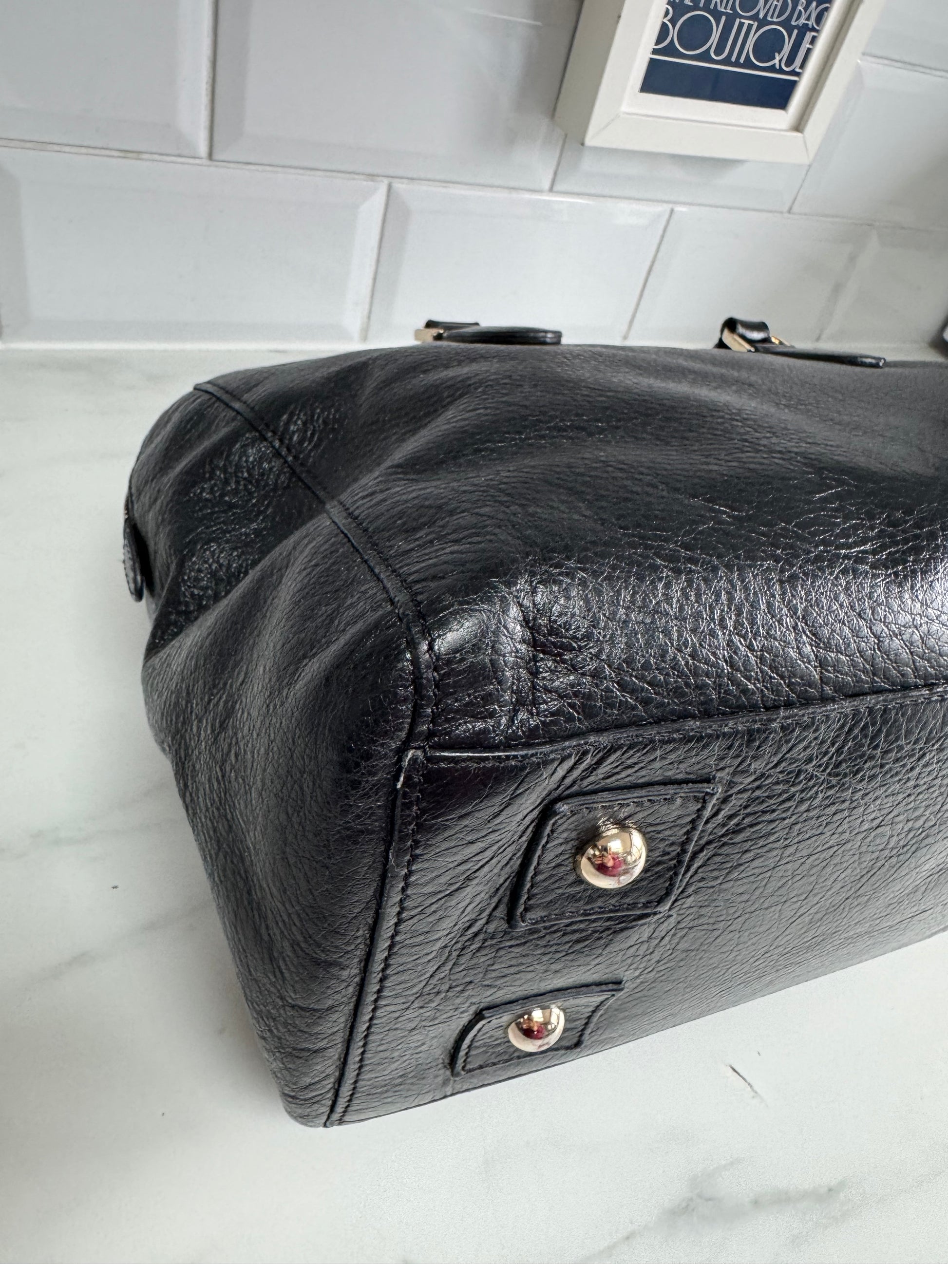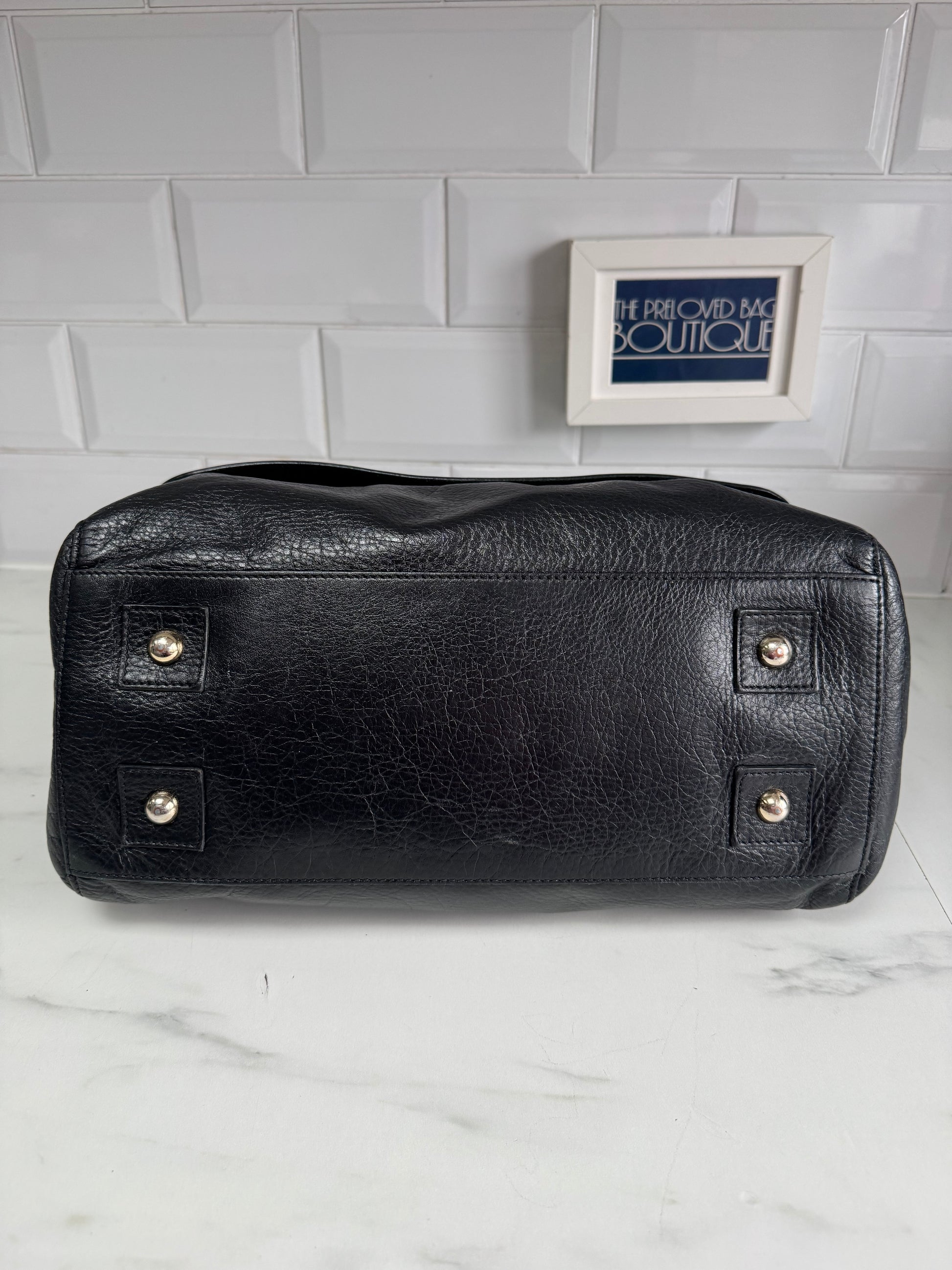 This the large sized Mulberry Del Rey in Black NVT leather with soft gold tone hardware.