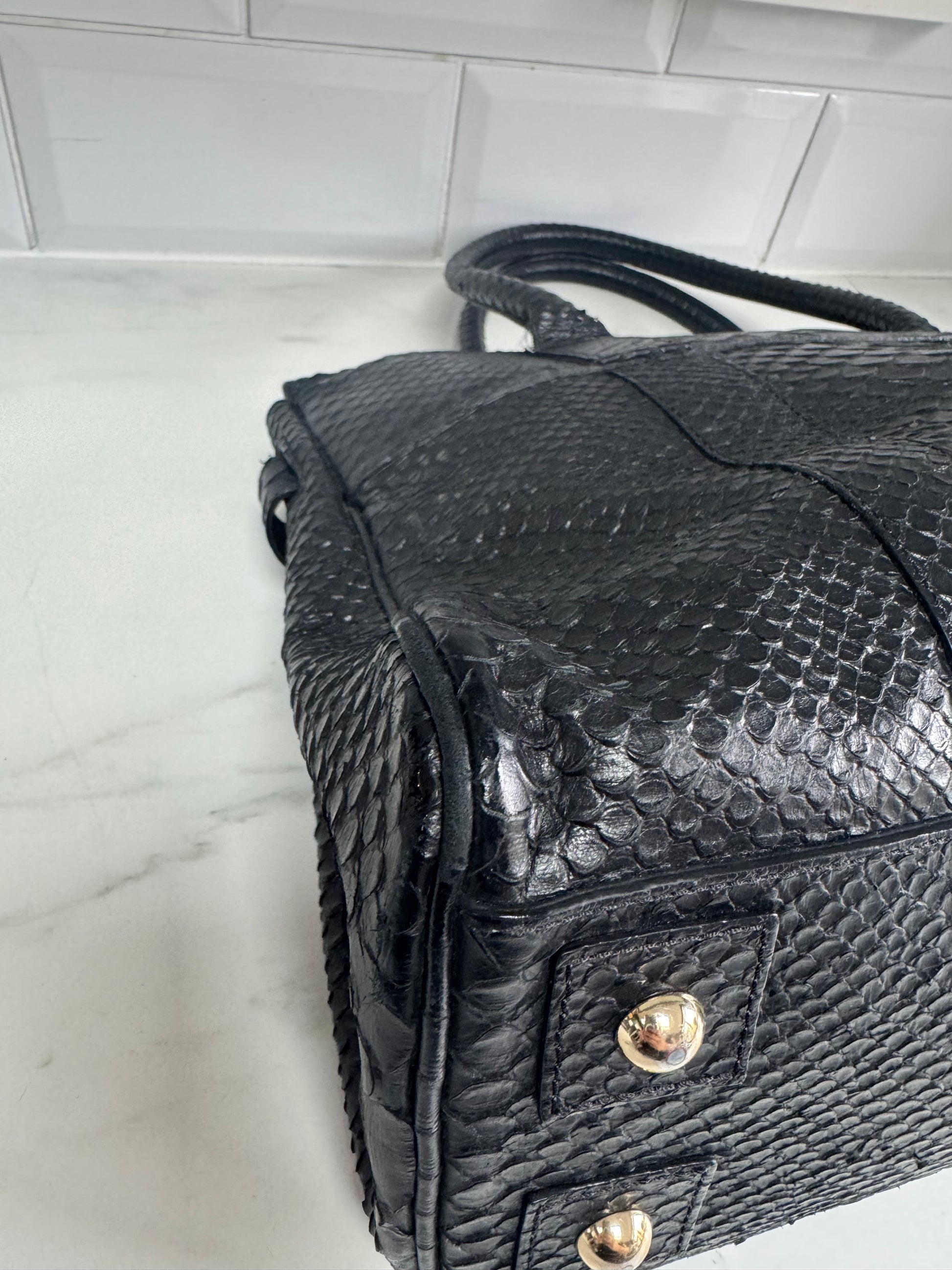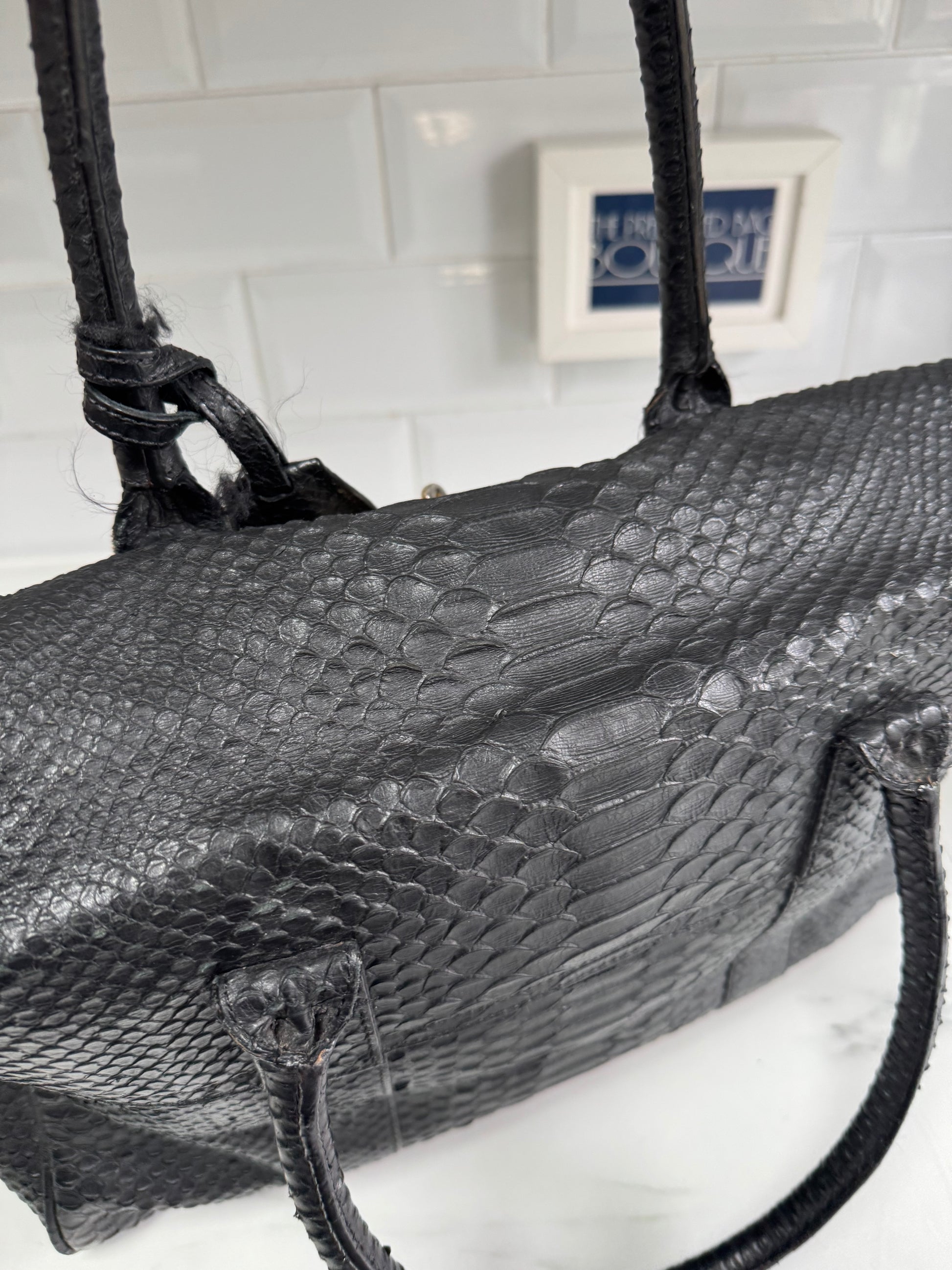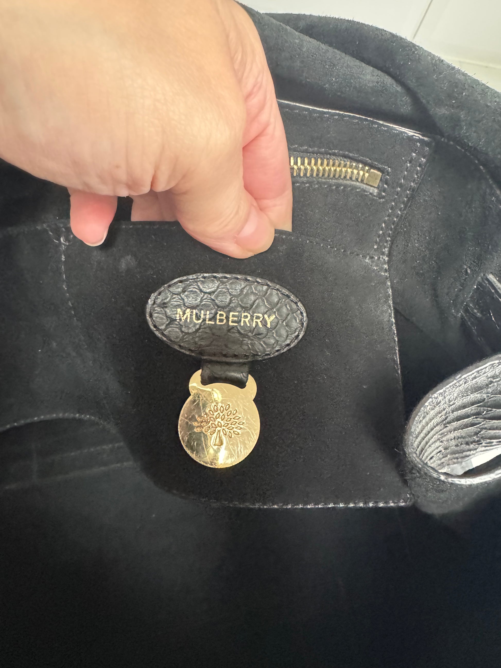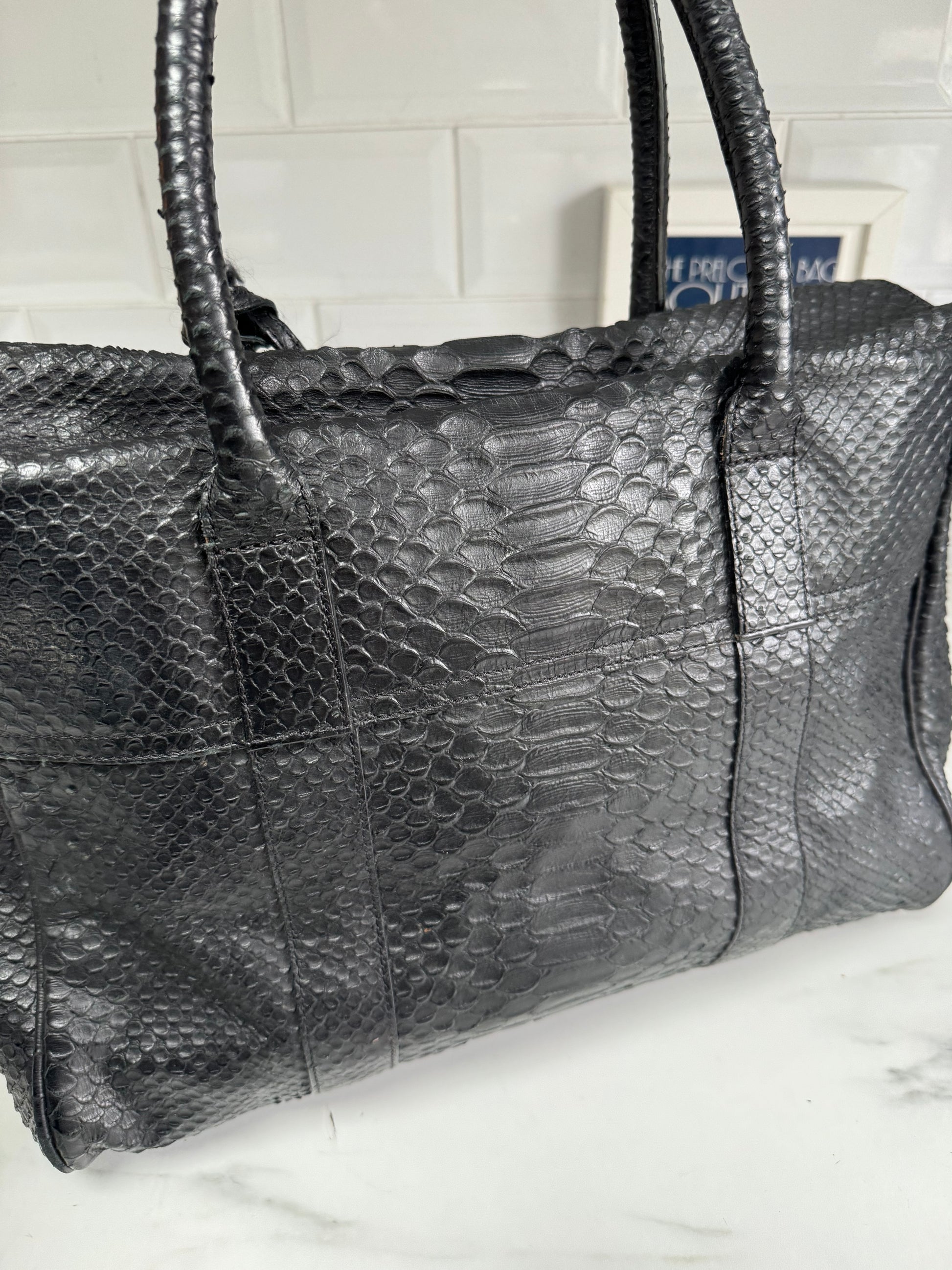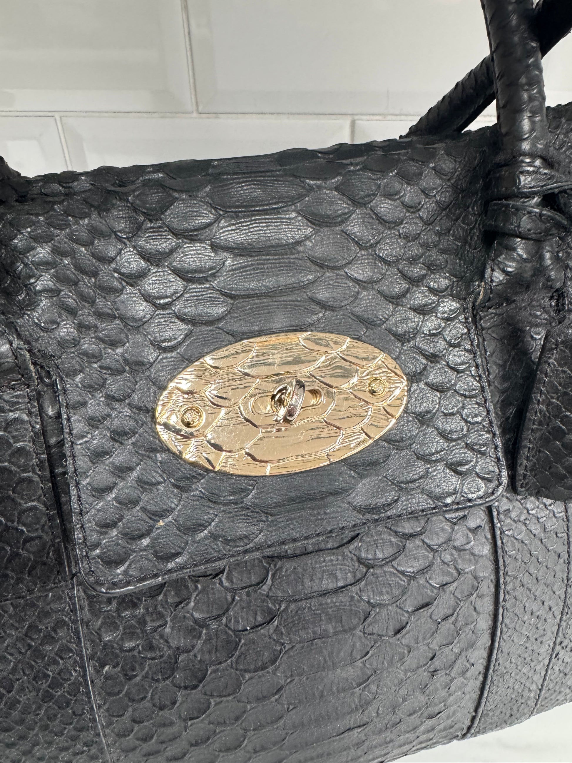 This is a very very gorgeous Mulberry Bayswater in black silky snake printed leather with brass tone hardware.