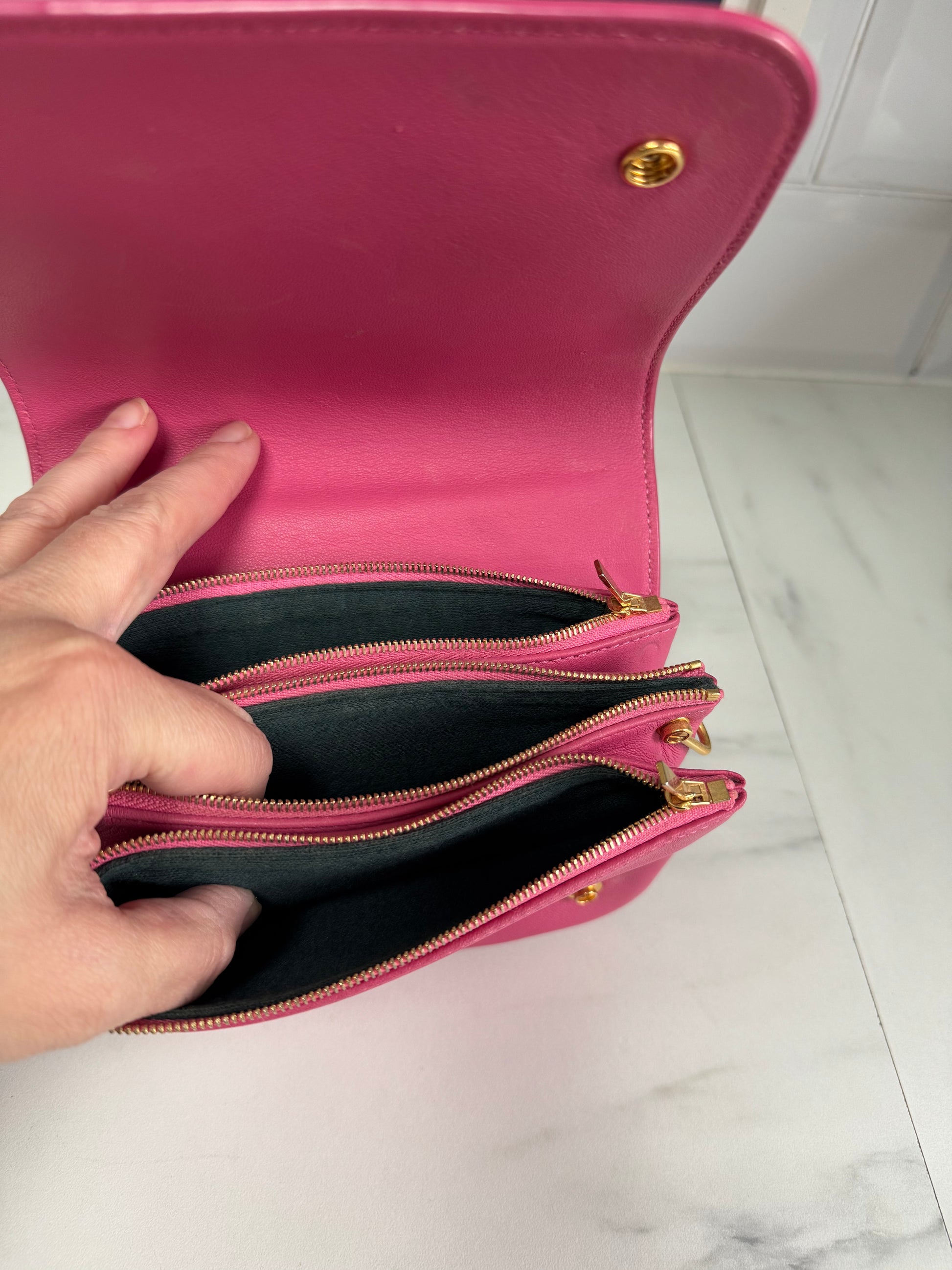The Small Clifton is a compact and understated shoulder bag that organises items into separate sections as there are concertina style sections.There are 3 internal zipped compartments that provide enough room to hold all essentials.