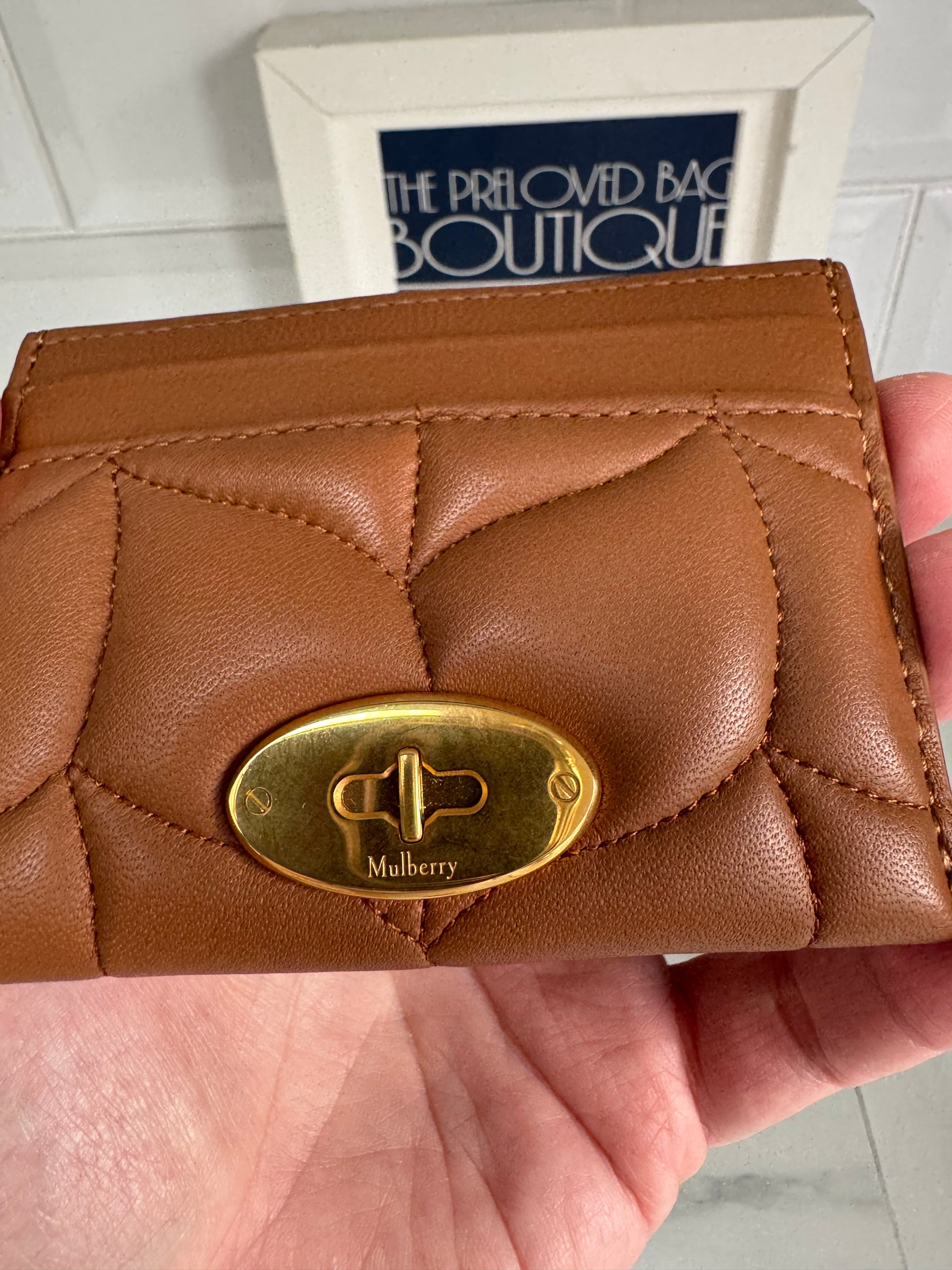 This is a fabulous Mulberry Softie Credit Card Holder in Tobacco Brown Quilted Calf Nappa Leather with Gold Tone Hardware.