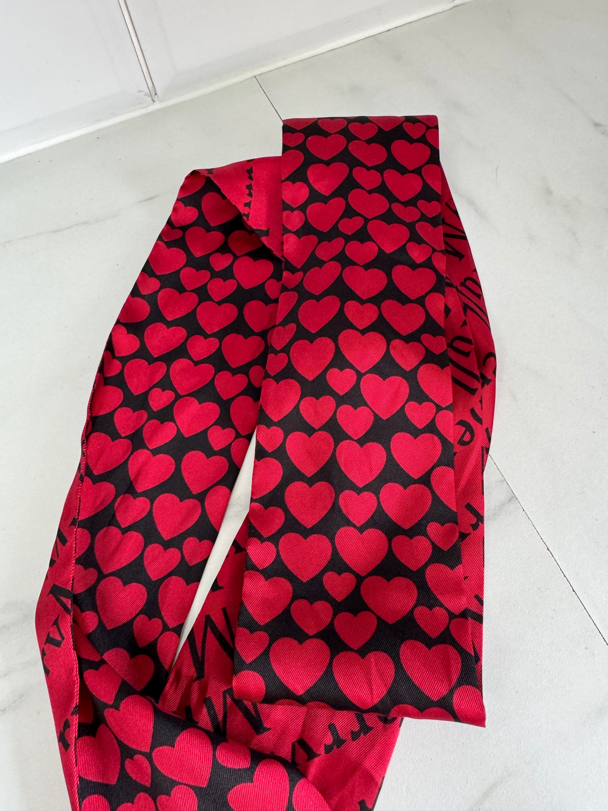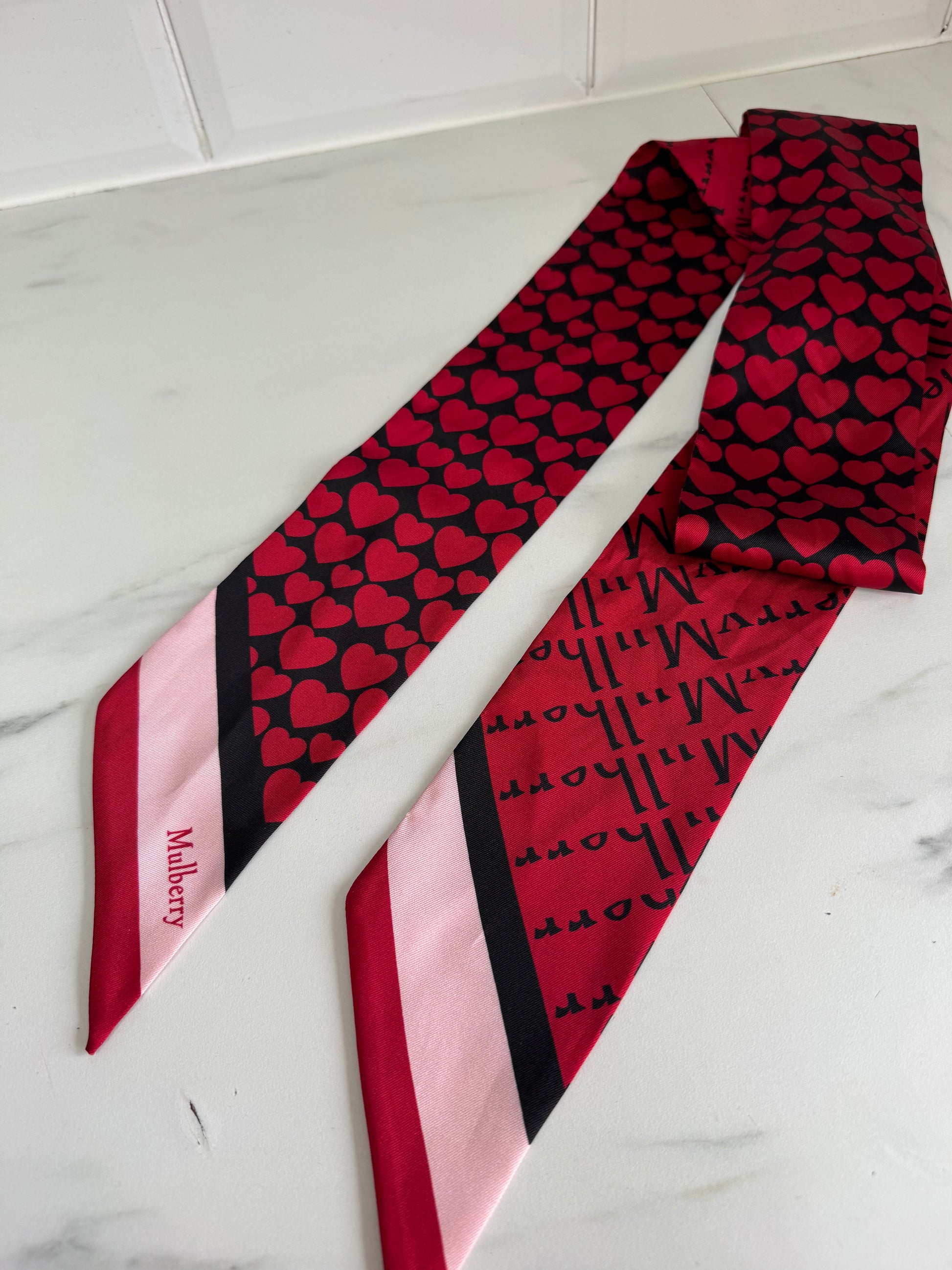 This is a fabulous Mulberry Scarf / Twilly in black with a beautiful heart and reversible brand name design.