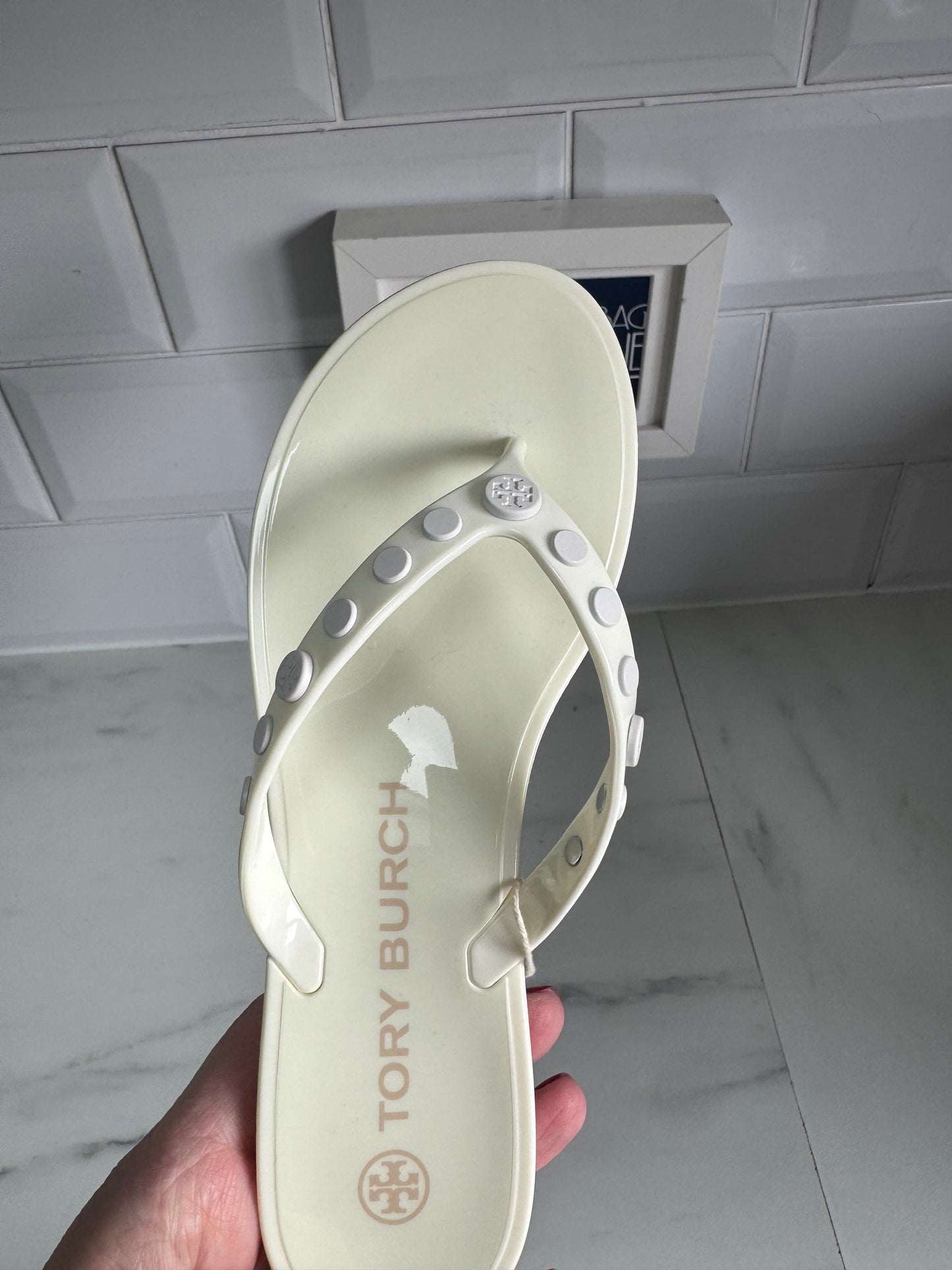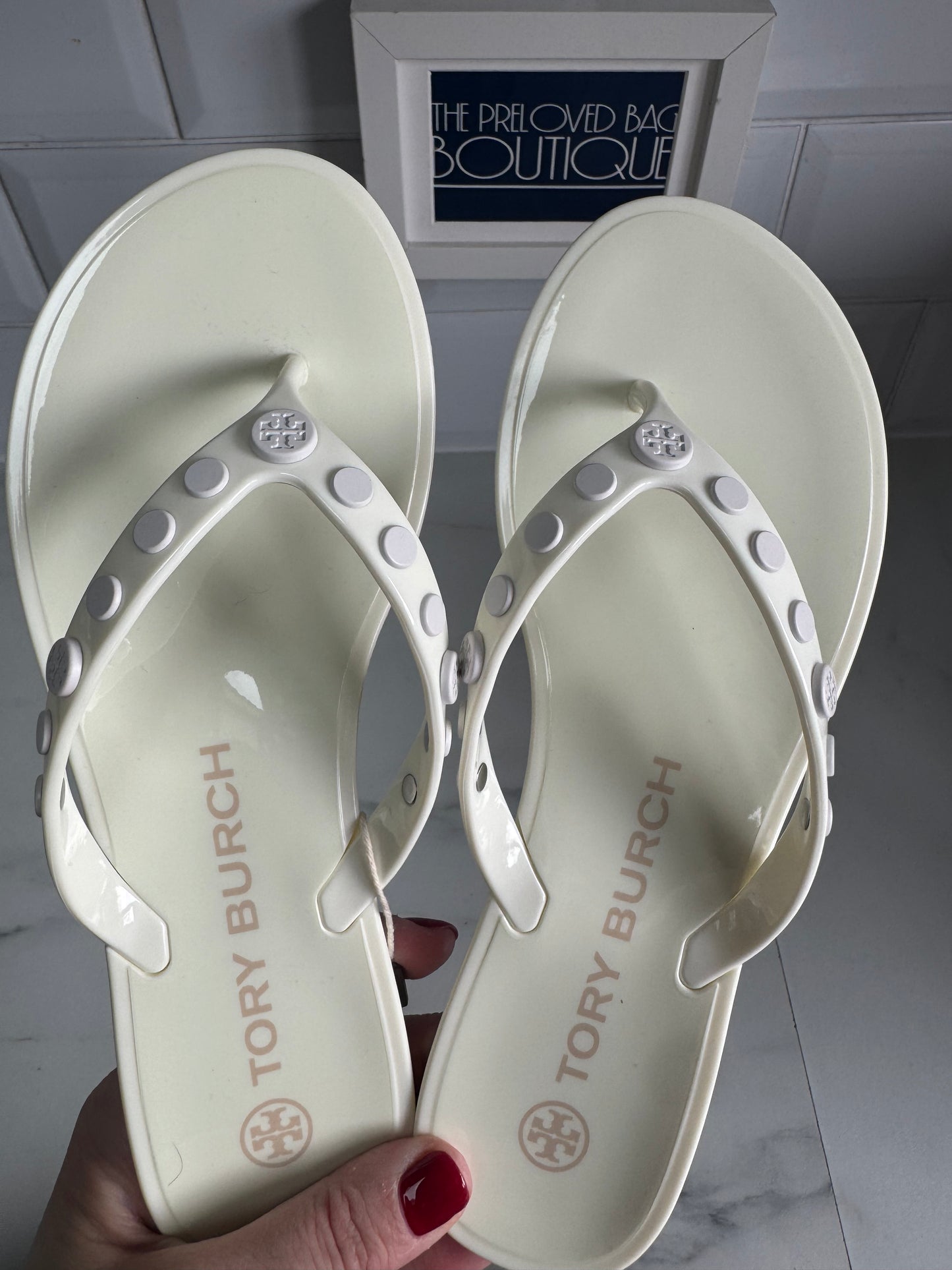A fresh take on the jelly sandal these Tory Burch flip-flops offer a streamlined and minimalist aesthetic.